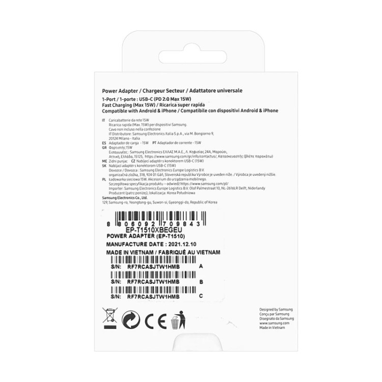 شارژر دیواری 15 وات سامسونگ مدل EP-T1510